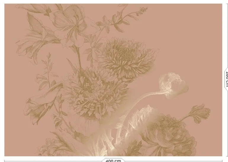 Mooi bloemen behang van KEK Amsterdam. Het KEK Amsterdam Goud Engraved bloemen behang nude heeft een zijdeglans uitstraling. Het behang heeft afmeting van 400x280cm (8 banen). Beschikbaar in verschillende afmetingen en kleuren.