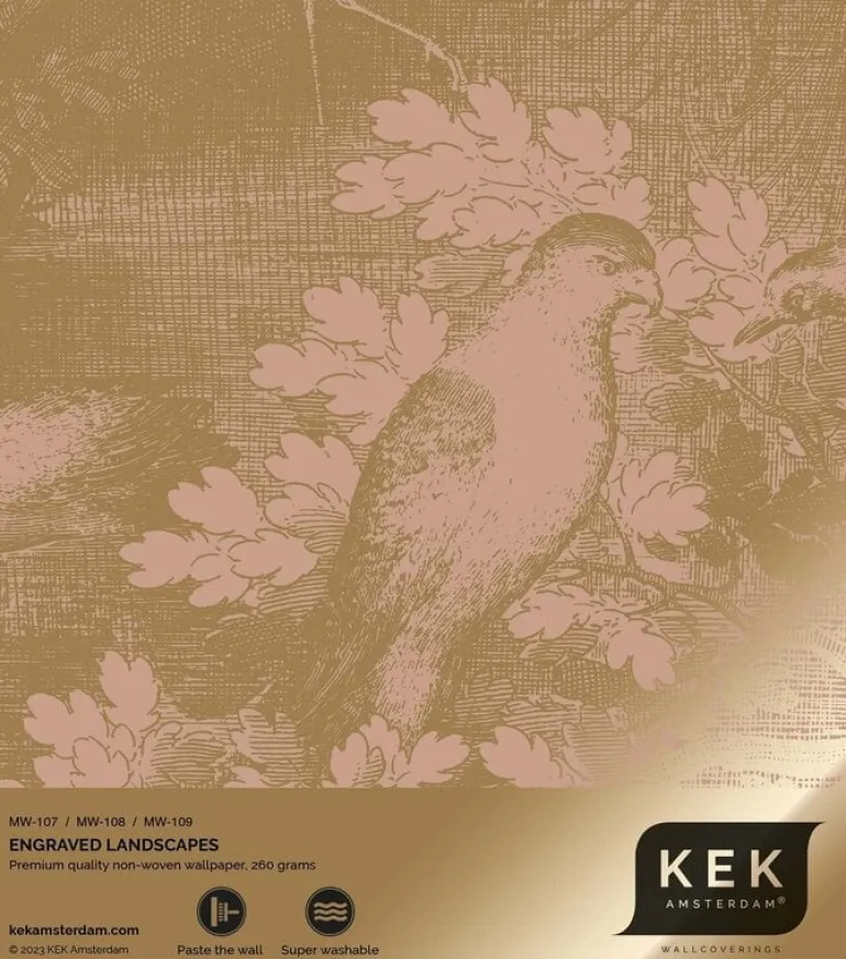 Mooi landschappen behang van KEK Amsterdam. Het KEK Amsterdam Goud Engraved landschappen behang nude is zeer geschikt om sfeer in je interieur te brengen. Afmeting behang 200x280cm (4 banen). Beschikbaar in verschillende afmetingen en kleuren.