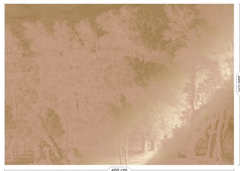 Mooi landschappen behang van KEK Amsterdam. Het KEK Amsterdam Goud Engraved landschappen behang nude is zeer geschikt om sfeer in je interieur te brengen. Afmeting behang 400x280cm (8 banen). Beschikbaar in verschillende afmetingen en kleuren.