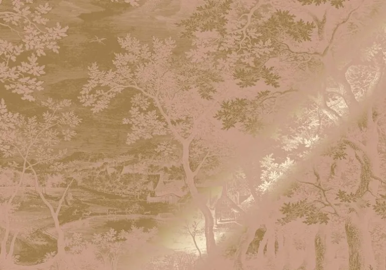 Mooi landschappen behang van KEK Amsterdam. Het KEK Amsterdam Goud Engraved landschappen behang nude is zeer geschikt om sfeer in je interieur te brengen. Afmeting behang 400x280cm (8 banen). Beschikbaar in verschillende afmetingen en kleuren.