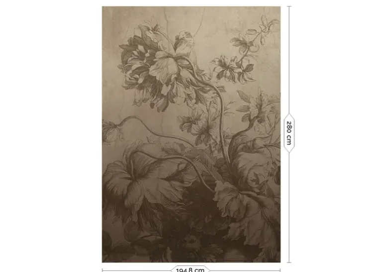 Frans Uyterlinde x KEK Amsterdam. Bloemenbehang met een subtiele achtergrond die van donker naar licht vervaagt. Het KEK Amsterdam Gradient Flowers behang heeft een afmeting van 194,8x280cm (4 banen). Beschikbaar in verschillende afmetingen.