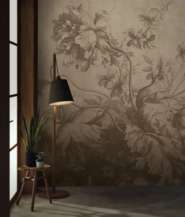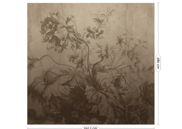Frans Uyterlinde x KEK Amsterdam. Bloemenbehang met een subtiele achtergrond die van donker naar licht vervaagt. Het KEK Amsterdam Gradient Flowers behang heeft een afmeting van 292,2x280cm (6 banen). Beschikbaar in verschillende afmetingen.