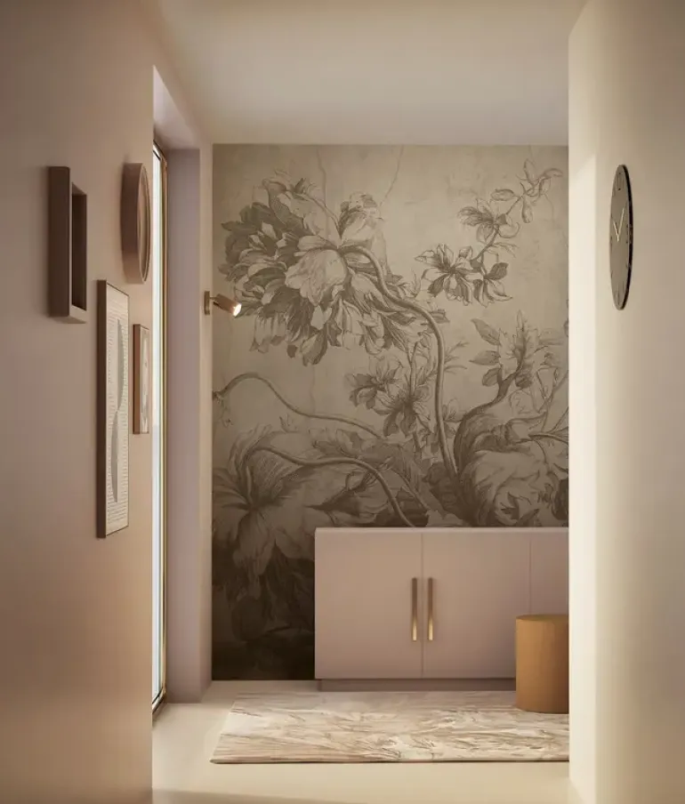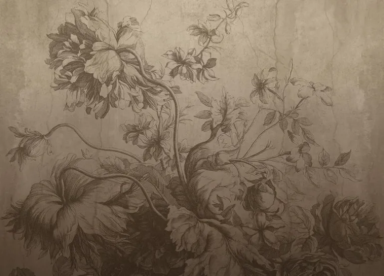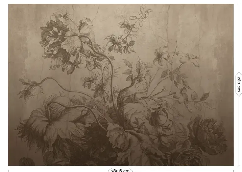 Frans Uyterlinde x KEK Amsterdam. Bloemenbehang met een subtiele achtergrond die van donker naar licht vervaagt. Het KEK Amsterdam Gradient Flowers behang heeft een afmeting van 389,6x280cm (8 banen). Beschikbaar in verschillende afmetingen.