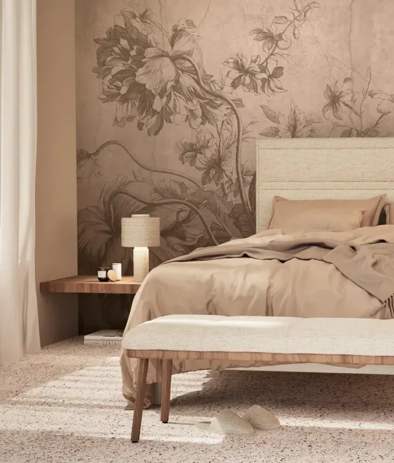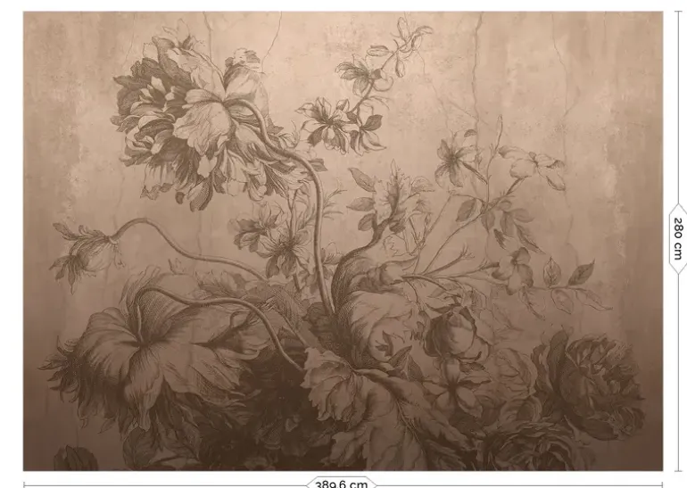 Frans Uyterlinde x KEK Amsterdam. Bloemenbehang met een subtiele achtergrond die van donker naar licht vervaagt. Het KEK Amsterdam Gradient Flowers behang heeft een afmeting van 389,6x280cm (8 banen). Beschikbaar in verschillende afmetingen.