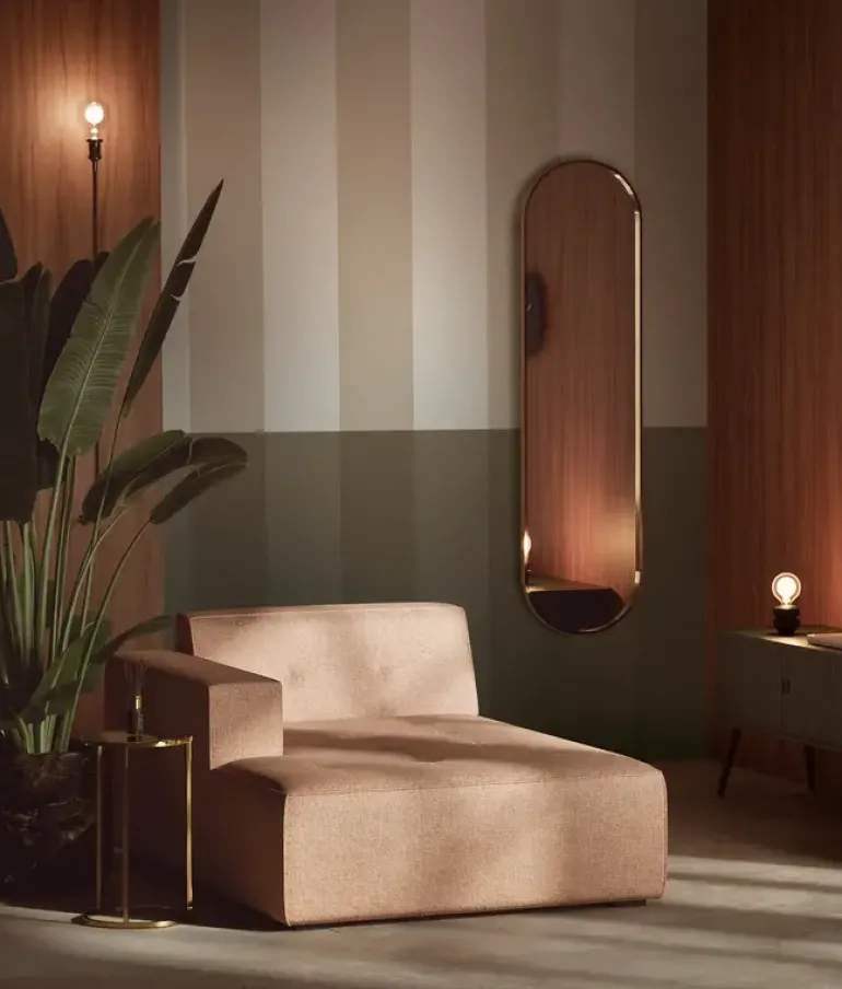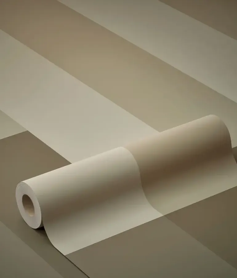 Frans Uyterlinde x KEK Amsterdam. Strepen behang met subtiel kleurverloop. Door de horizontale lijnen lijkt het op een lambrisering. Het KEK Amsterdam Gradient Stripes behang heeft een afmeting van 97,4x280cm (2 banen).