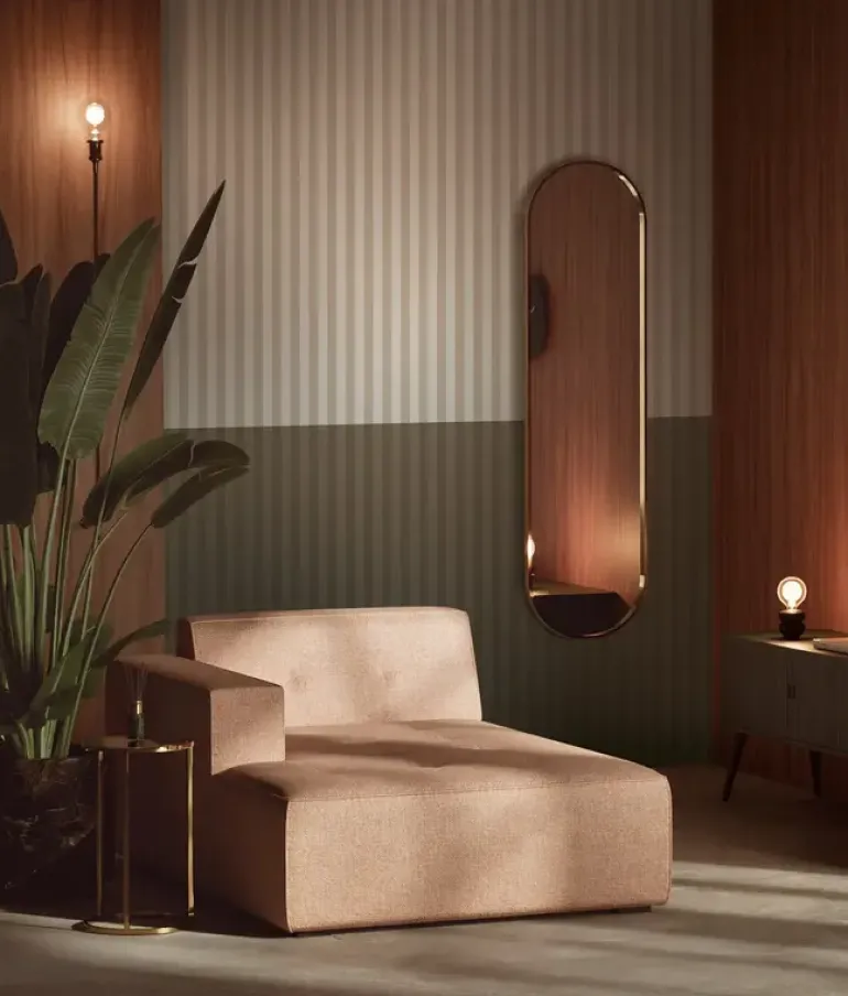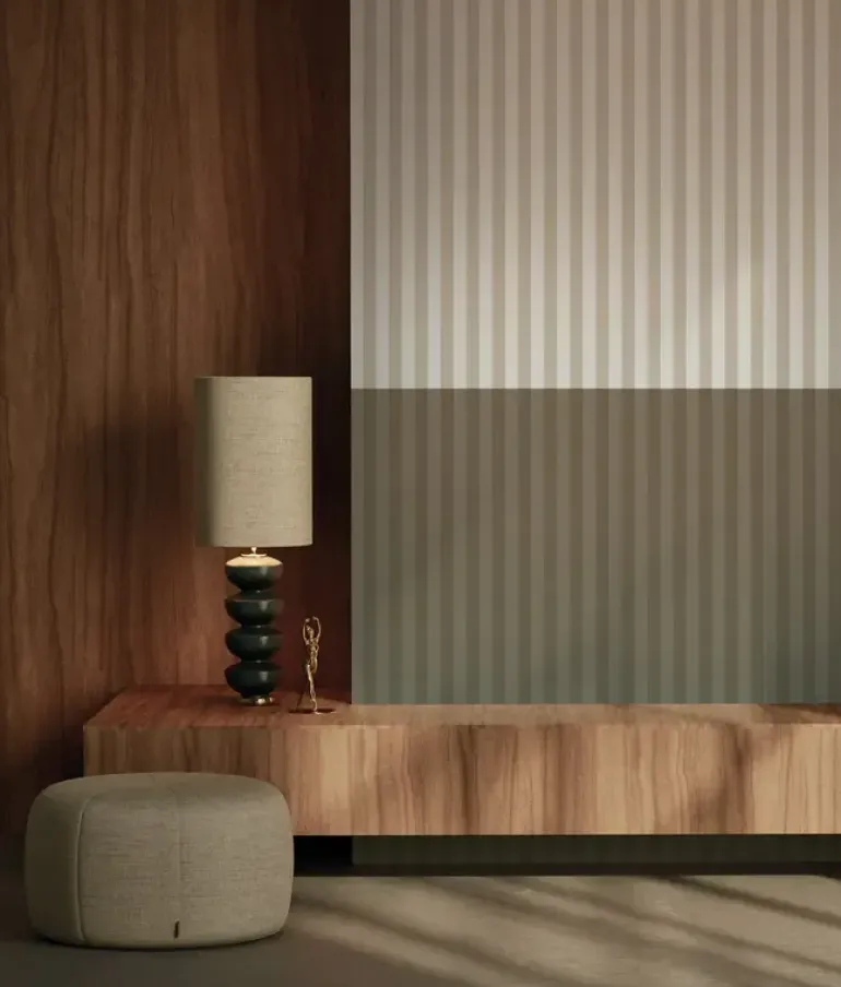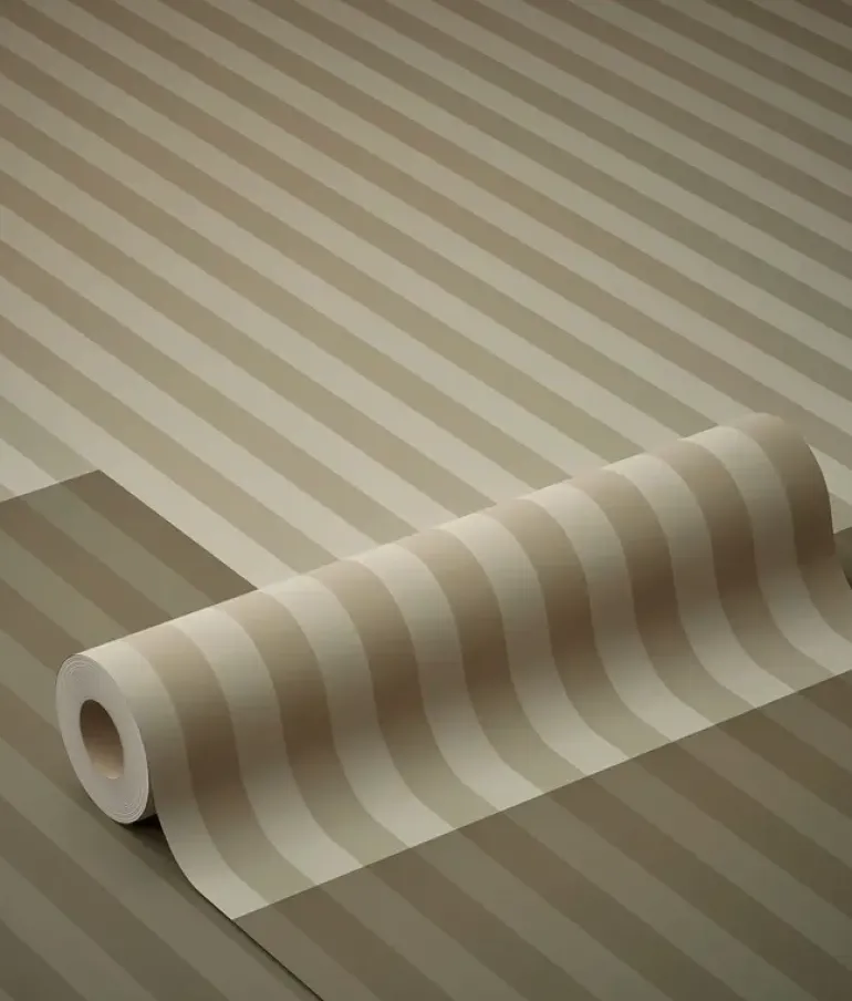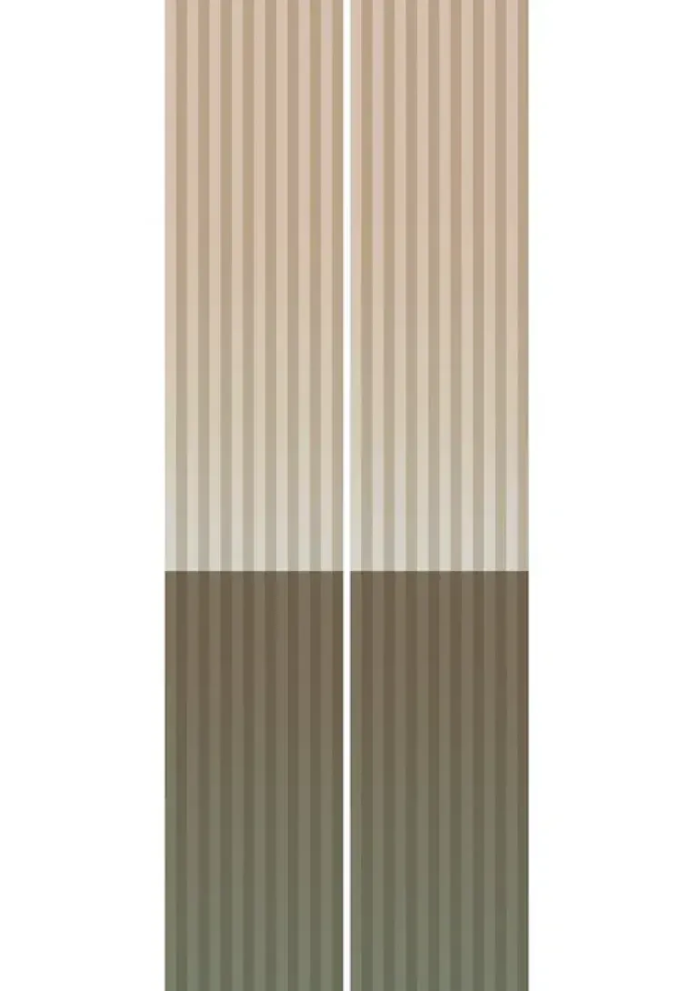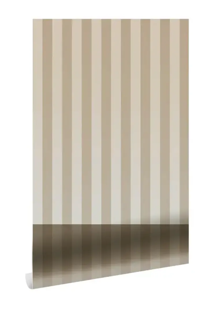 Frans Uyterlinde x KEK Amsterdam. Strepen behang met subtiel kleurverloop. Door de horizontale lijnen lijkt het op een lambrisering. Het KEK Amsterdam Gradient Stripes behang heeft een afmeting van 97,4x280cm (2 banen).