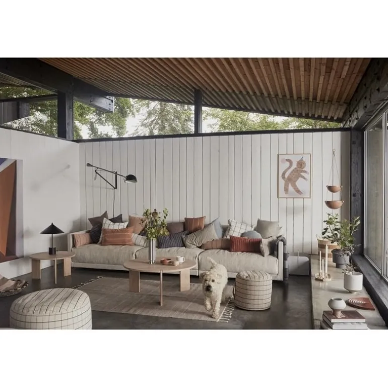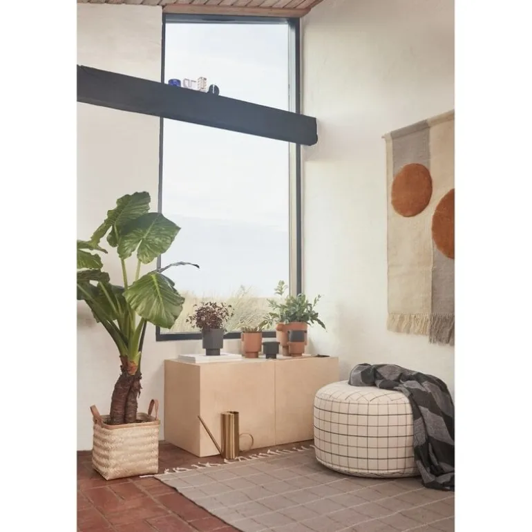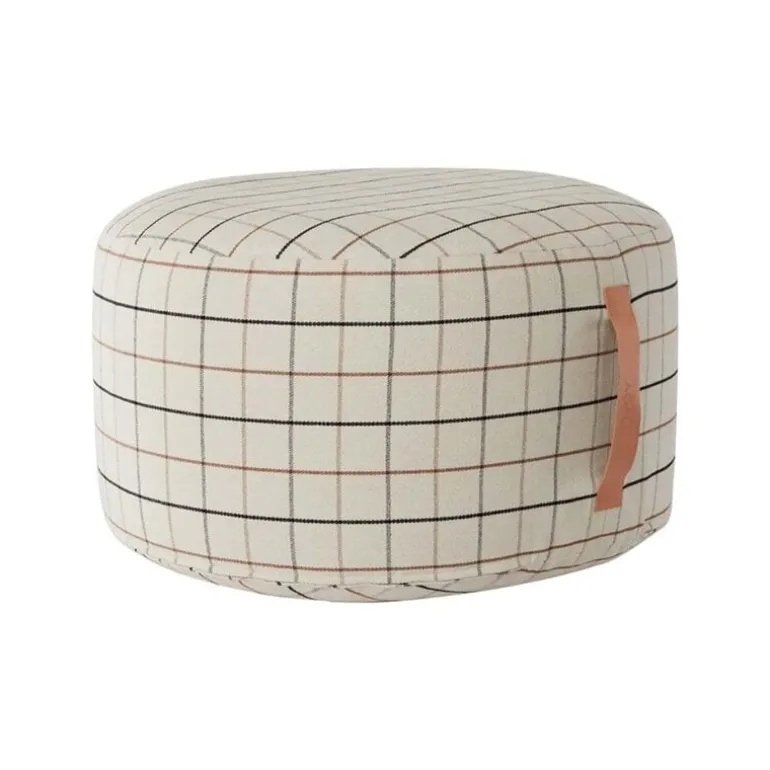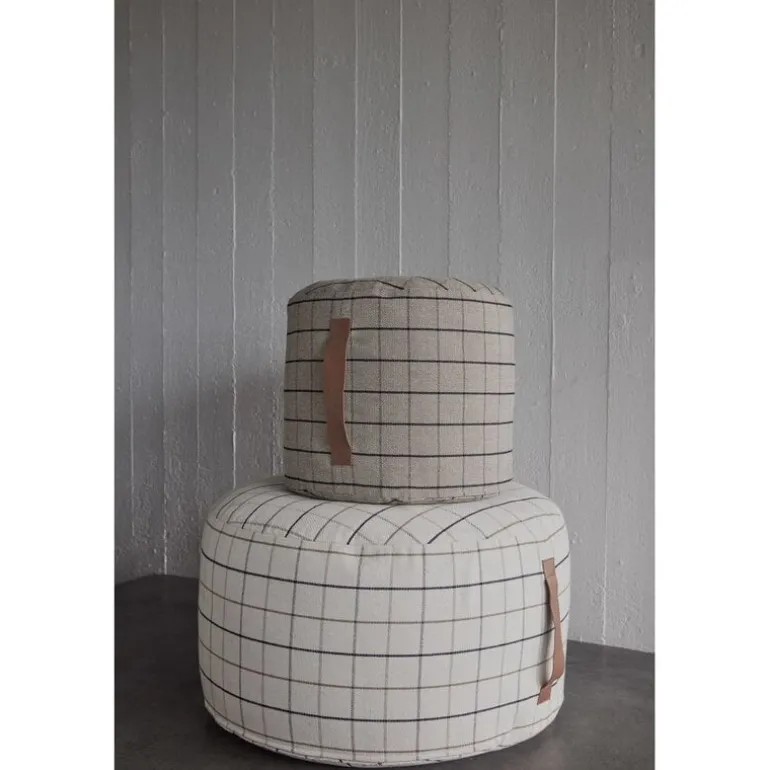 Mooie moderne poef van het interieurmerk OYOY. De OYOY Grid poef is gemaakt van canvas katoen gevuld met foam balletjes. Afmeting Ø65x38cm