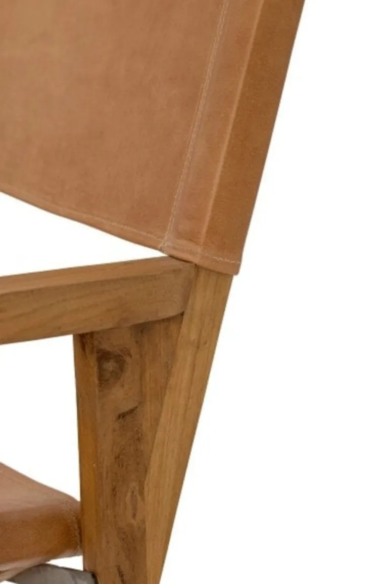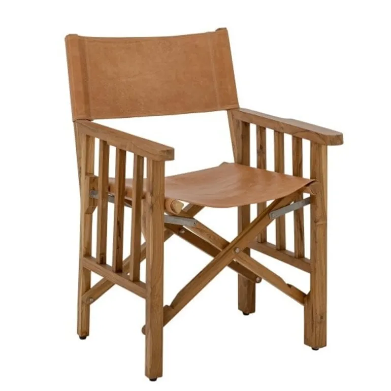 Mooie teak houten stoel met leren zitten en rugleuning. De inklapbare Bloomingville Guus stoel heeft een afmeting van L58,5xH84xW57 cm.