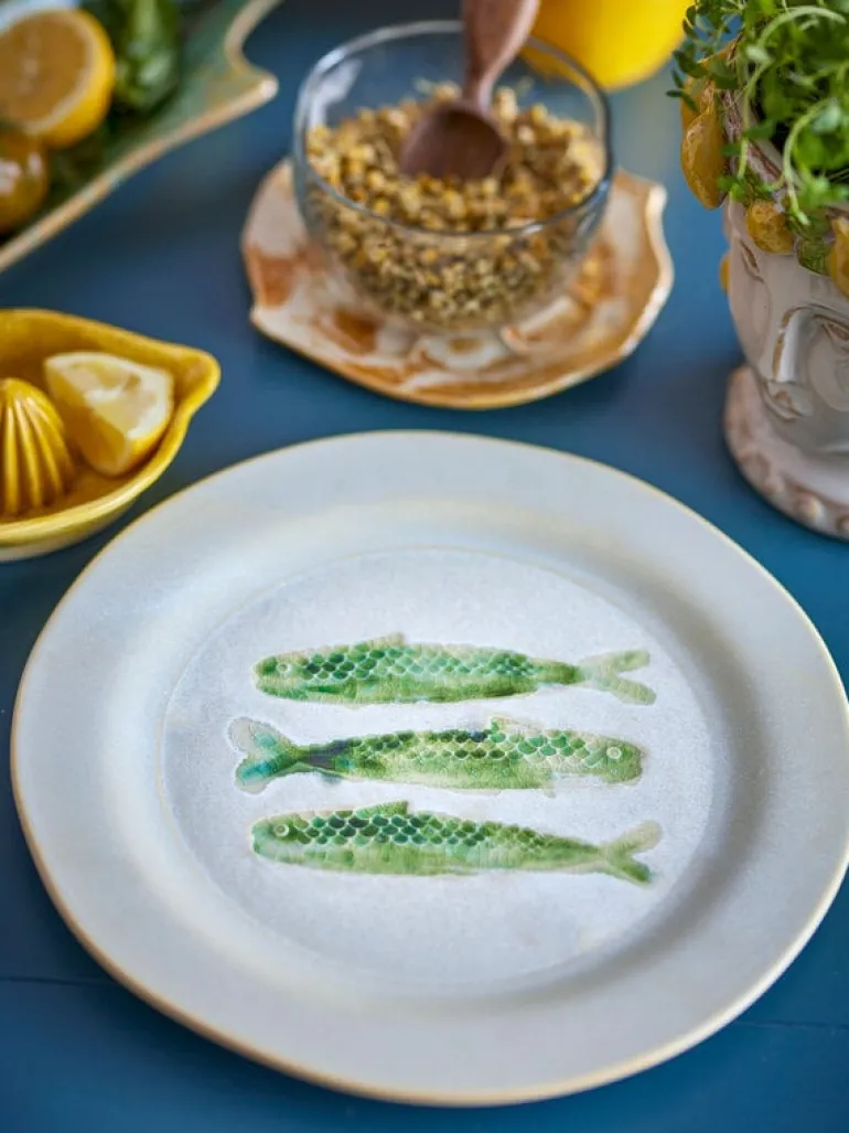 De Bloomingville Hadden borden zijn gemaakt van aardewerk met drie groene vissen in het midden. De borden worden geleverd in een set van 4 stuks en hebben een unieke, handbeschilderde look in groentinten. Afmeting Ø27x2cm