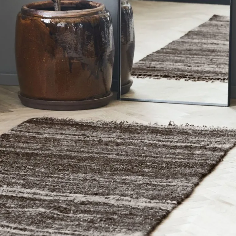 Prachtig House Doctor Hafi vloerkleed. Dit bruin kleurige vloerkleed is gemaakt van jute, wol en katoen en heeft een afmeting van 200x80cm.