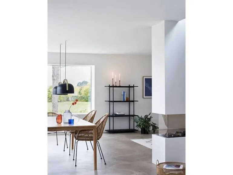 Moderne hanglamp van het Deense interieurmerk Hübsch. Deze prachtige Hübsch hanglamp is gemaakt van zwart metaal met messing detail en wordt geleverd zonder lichtbron. De hanglamp heeft een doorsnede van 30cm en hoogte van 26cm.