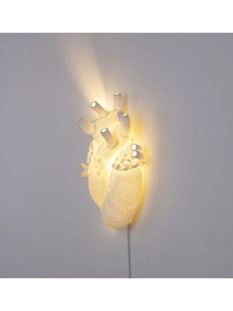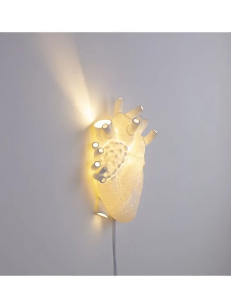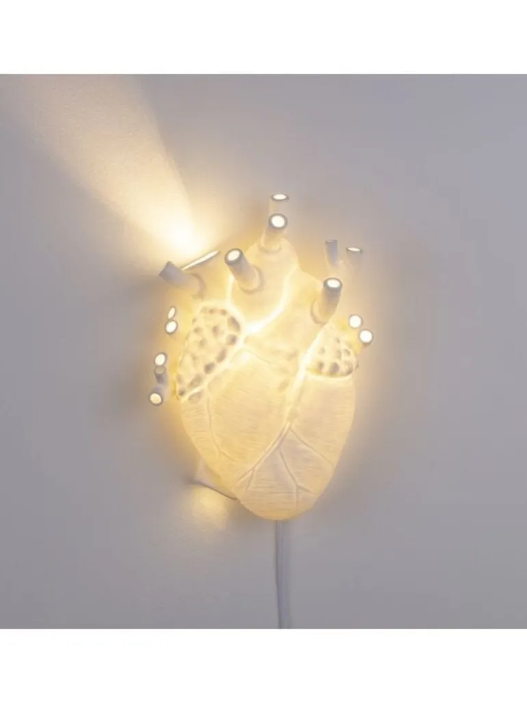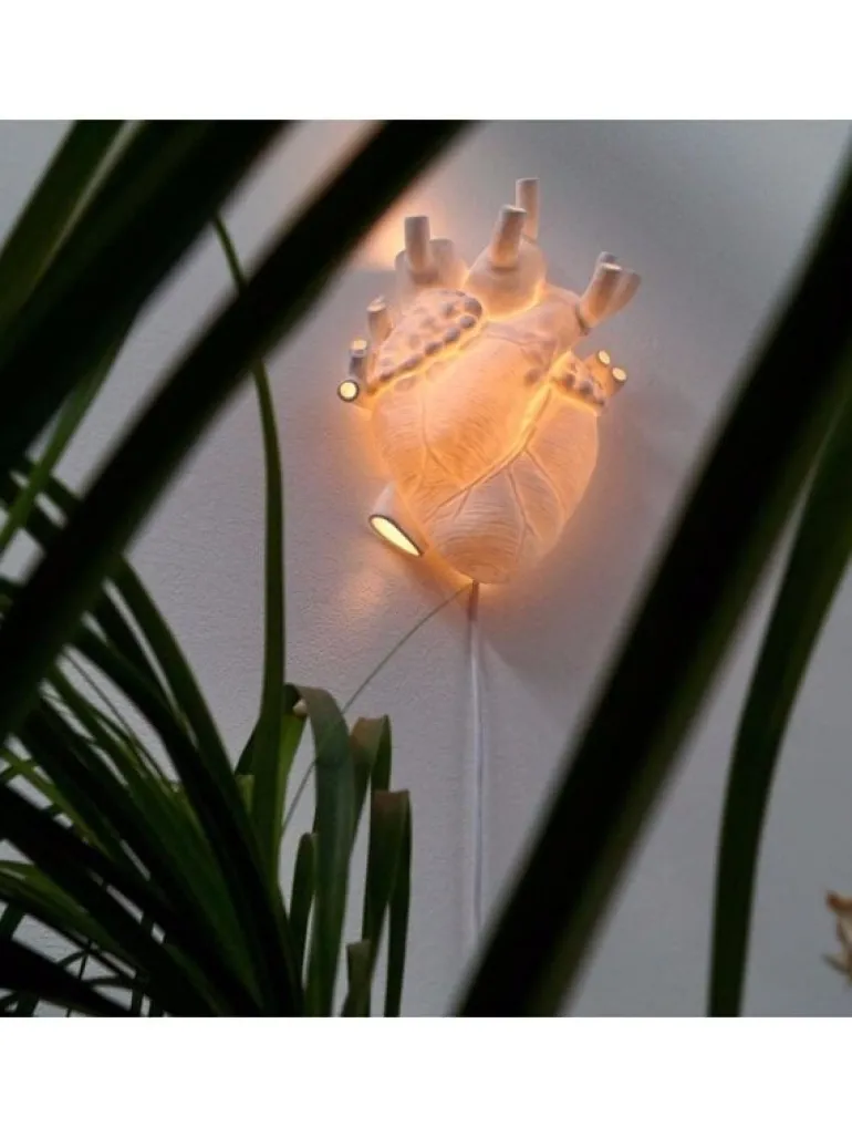 Deze originele wandlamp van Seletti is gemaakt van porselein en heeft een afmeting van 22x11cm, hoogte 32cm. De Seletti Heart lamp geeft mooi warm en romantisch licht.