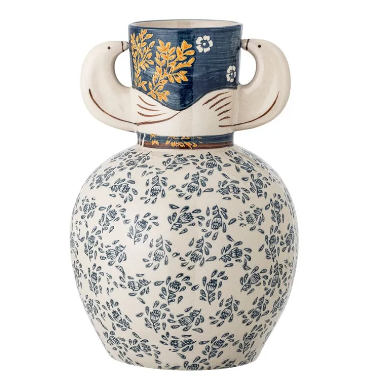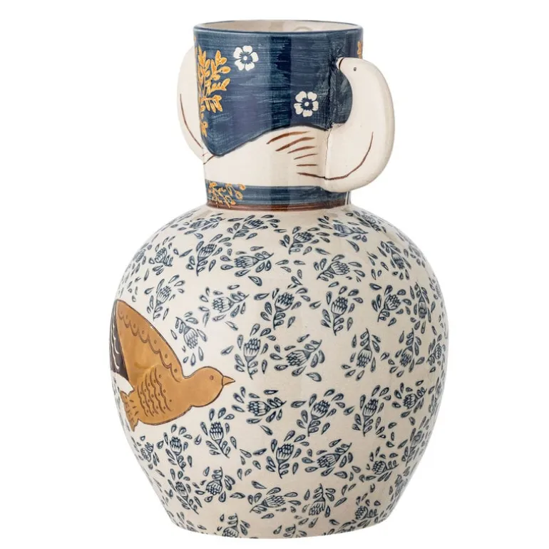 De Bloomingville Hezha vaas is een unieke, met de hand gedecoreerde vaas met fijne details. Het heeft een reliëfontwerp en gedrukte vogelmotieven in warme kleuren, waardoor het een onderscheidende uitstraling heeft. Afmeting Ø16,5×23,5cm