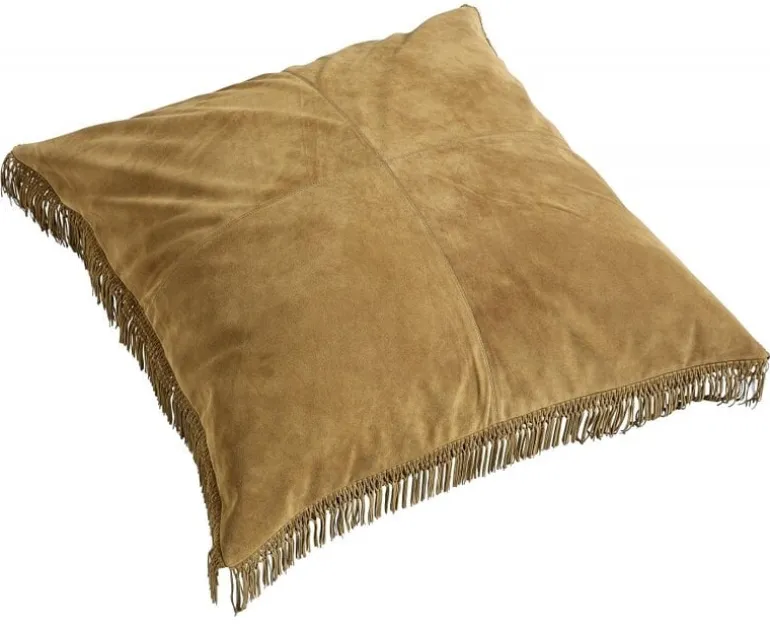 Wat een eyecatcher! Heerlijk groot kussen met franjes van Nordal. Het kussen is gemaakt van leer (voorkant) en katoen (achterkant). Kussen wordt geleverd incl vulling. Afmeting 100x100cm. Beschikbaar in twee maten.
