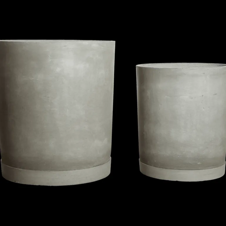 De House Doctor Hook plantenbakken inclusief schotels zijn gemaakt van fiber cement in een lichtgrijze kleur. Wordt geleverd in een set van 2 stuks met beide een andere afmeting. Afmeting Ø40x45cm en Ø50x55cm
