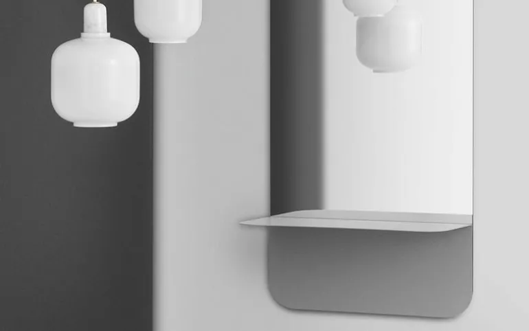 Mooie Normann Copenhagen spiegel met plank. De Normann Copenhagen Horizon spiegel is praktisch door de geïntegreerde plank. De spiegel is beschikbaar in verschillende vormen, kleuren en materialen. Afmeting 80x40x17cm