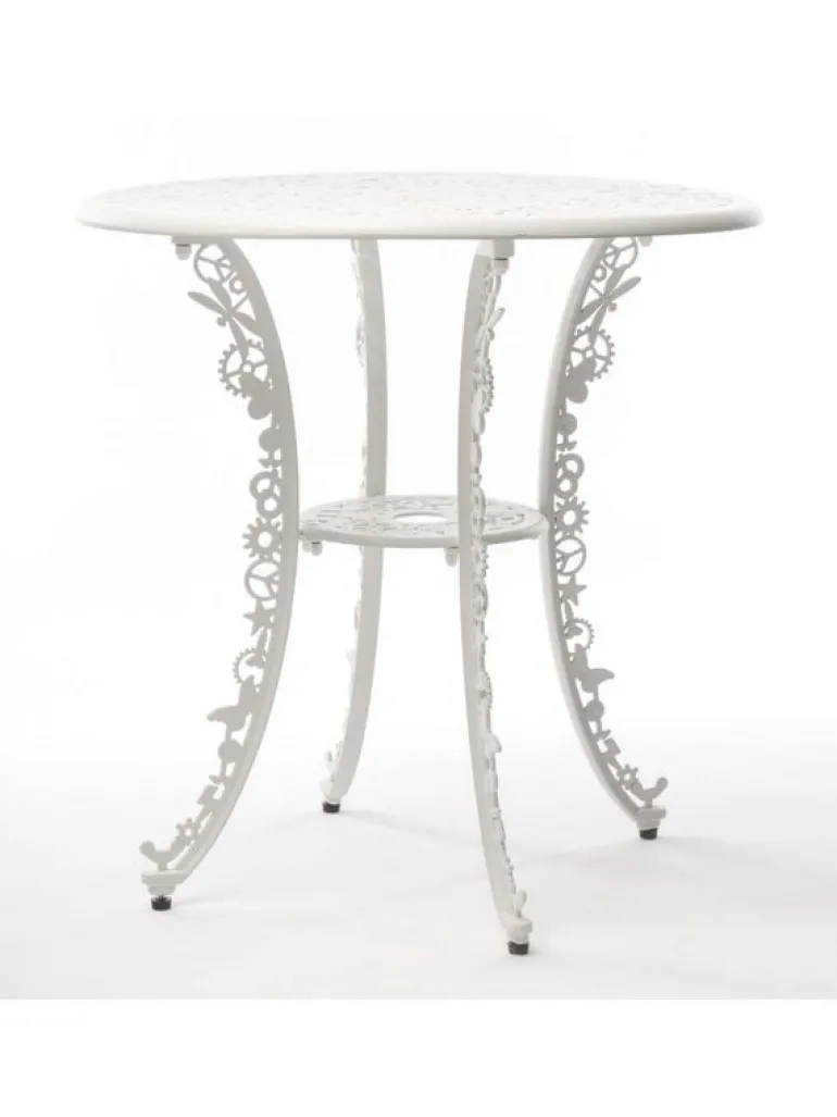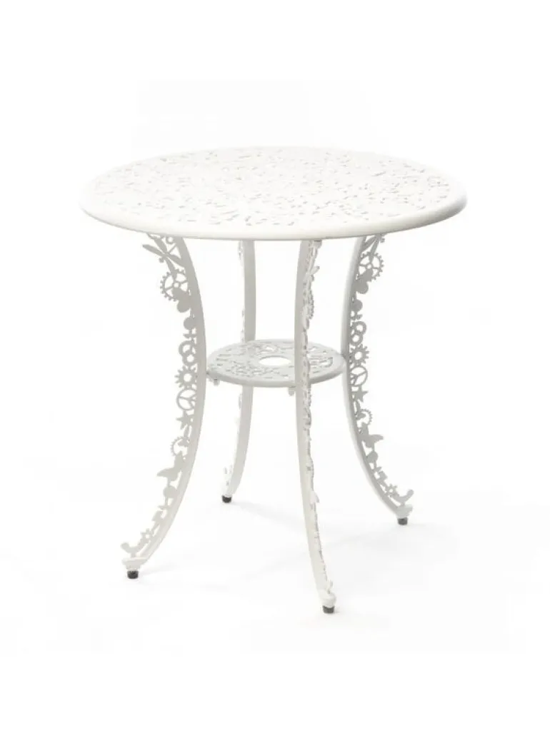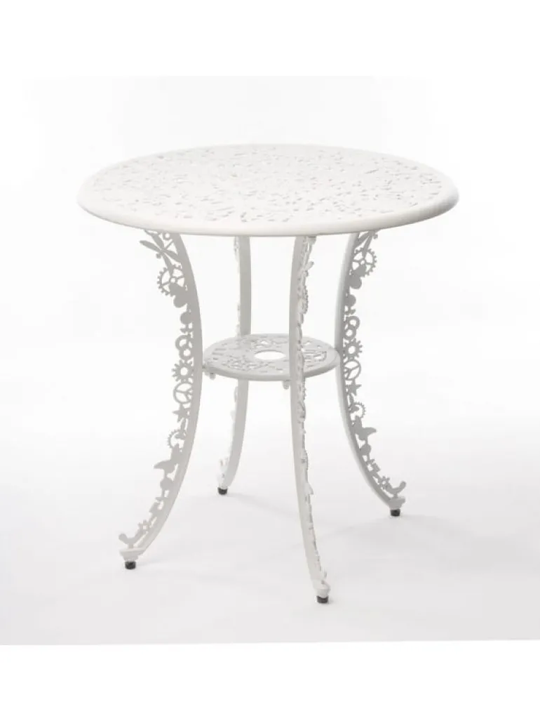 Tuintafel van Seletti. De Seletti Industry collection tafel maakt deel uit van de Industry collectie, in deze serie zijn tafels en stoelen beschikbaar in verschillende kleuren en afmetingen. Gemaakt van aluminium met een matte poedercoating. Afmeting Ø70