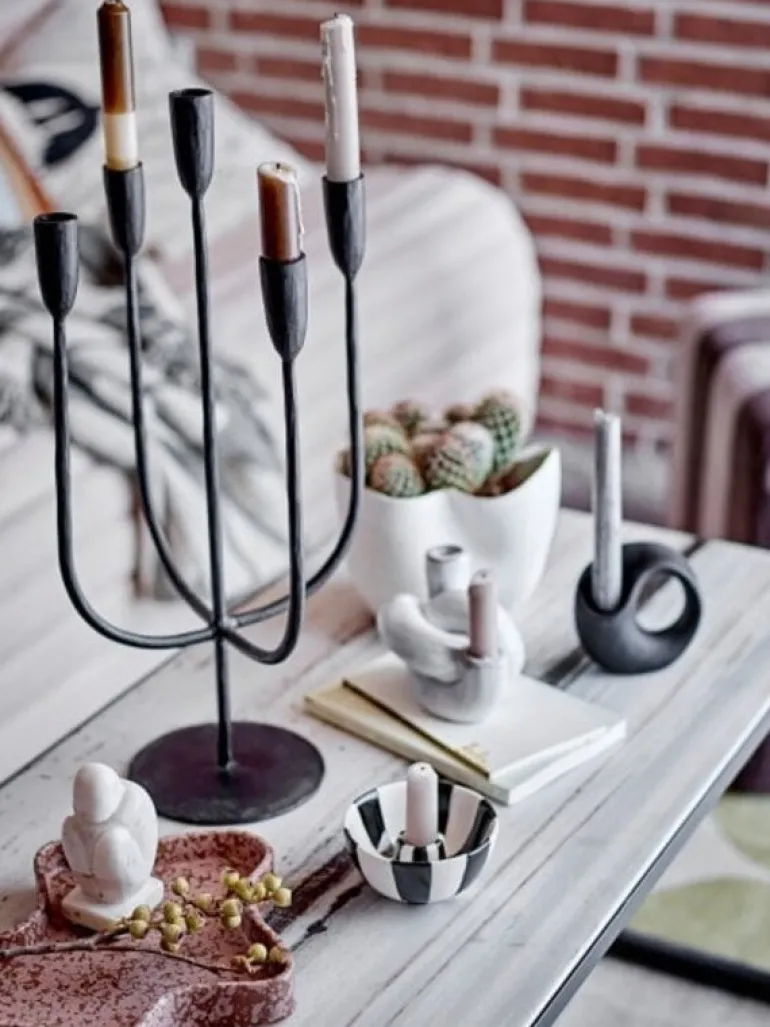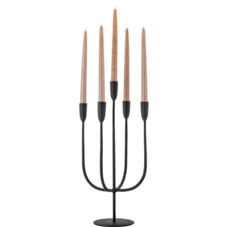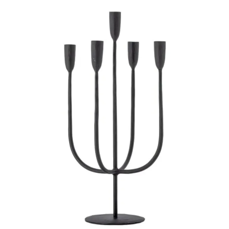 Grote ijzeren kandelaar in de kleur zwart van Bloomingville. De Bloomingville Izma kandelaar heeft een afmeting van Ø24x50cm. Er kunnen 5 kaarsen geplaatst worden in de kandelaar.