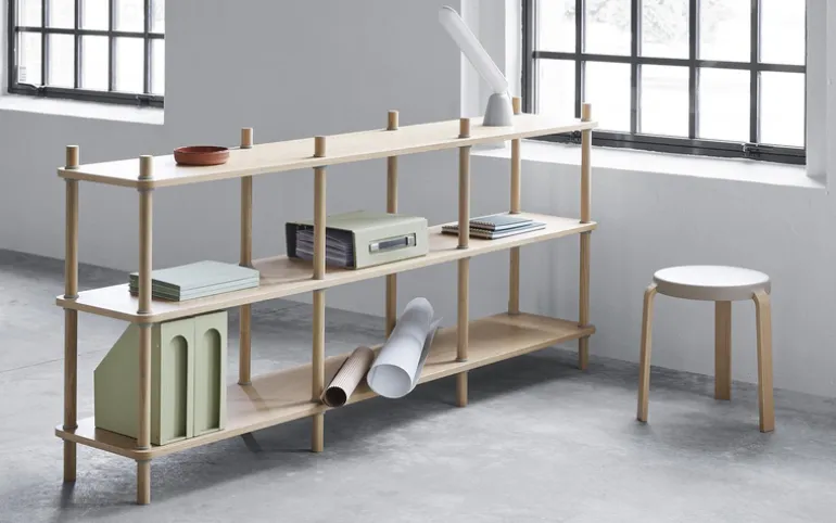 Moderne boekenkast van het Deense merk Normann Copenhagen. De Normann Copenhagen Jam boekenkast heeft een elegant design en is gemaakt van eikenfineer en polypropyleen. Afmeting 90x203x38cm