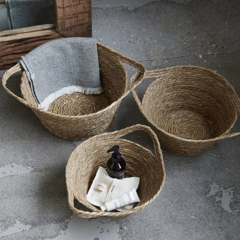 Prachtige manden van het populaire interieurmerk House Doctor. De ideale mandjes om spullen in op te bergen. Gemaakt van riet, wordt geleverd in een set van 3 stuks met verschillende afmetingen.