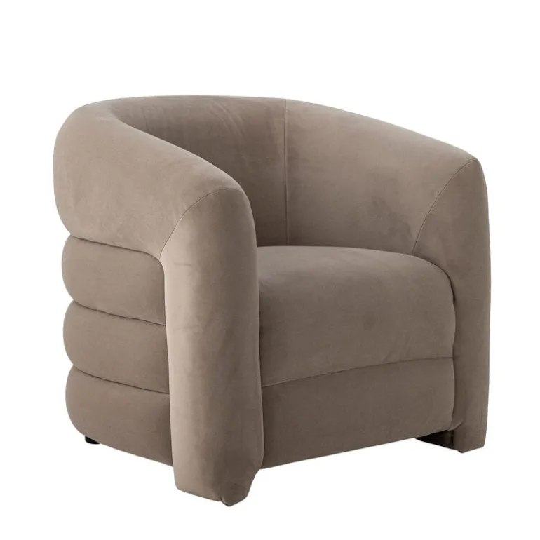 De Bloomingville Joel fauteuil combineert een stijlvolle inrichting met comfort. De stoel is bekleed met zacht grijs fluweel en heeft een ronde, omarmende rugleuning die uitnodigt tot ontspanning. Afmeting 78x76x78cm