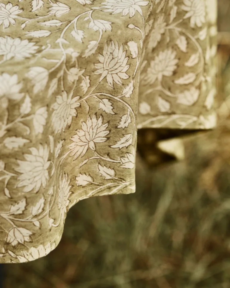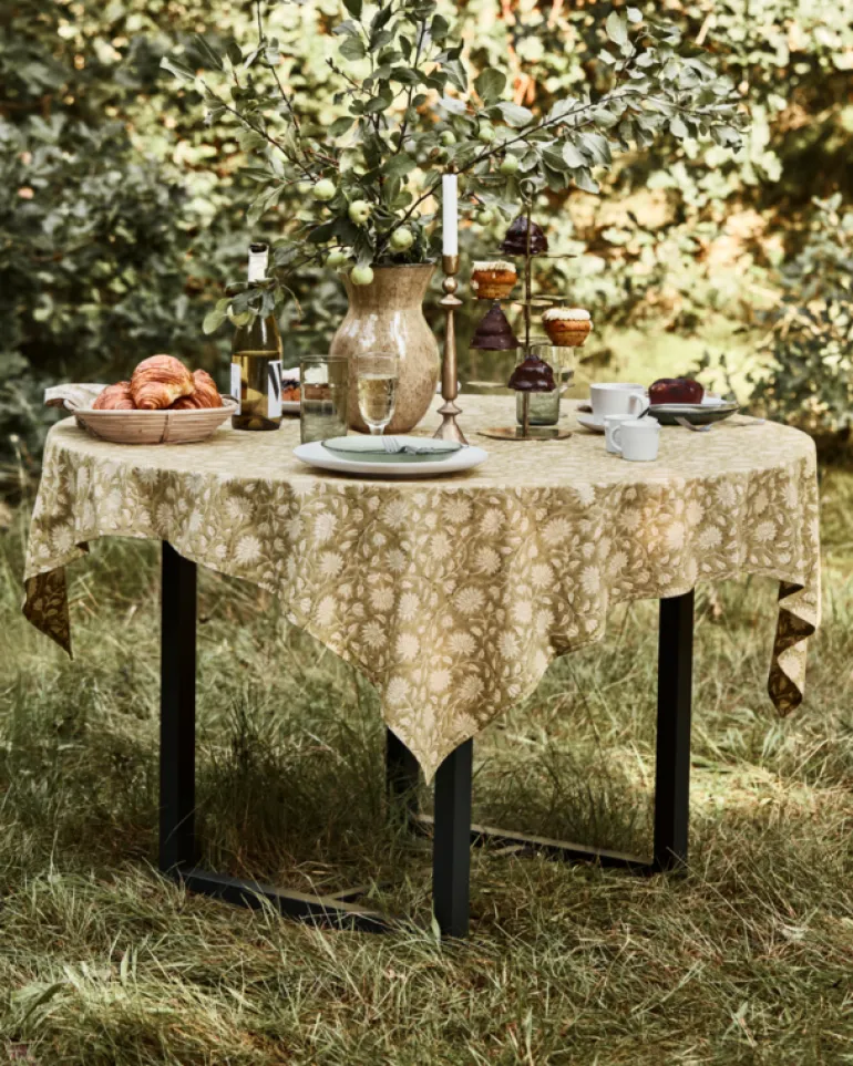 Geef je tafel een vleugje elegantie met het mooie House Doctor Join tafelkleed. Het tafelkleed heeft het een prachtig handgedrukt bloemmotief in zachte groene tinten. Gemaakt van 100% katoen. Afmeting 150x150cm