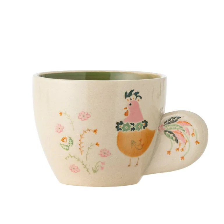 De Bloomingville Joshua mokken zijn met de hand gedecoreerd. De buitenkant van de mok is voorzien van een decoratieve kip, terwijl de binnenkant een mooie groene kleur heeft. Wordt geleverd in een set van 6 stuks. Afmeting Ø9,5×7,5cm