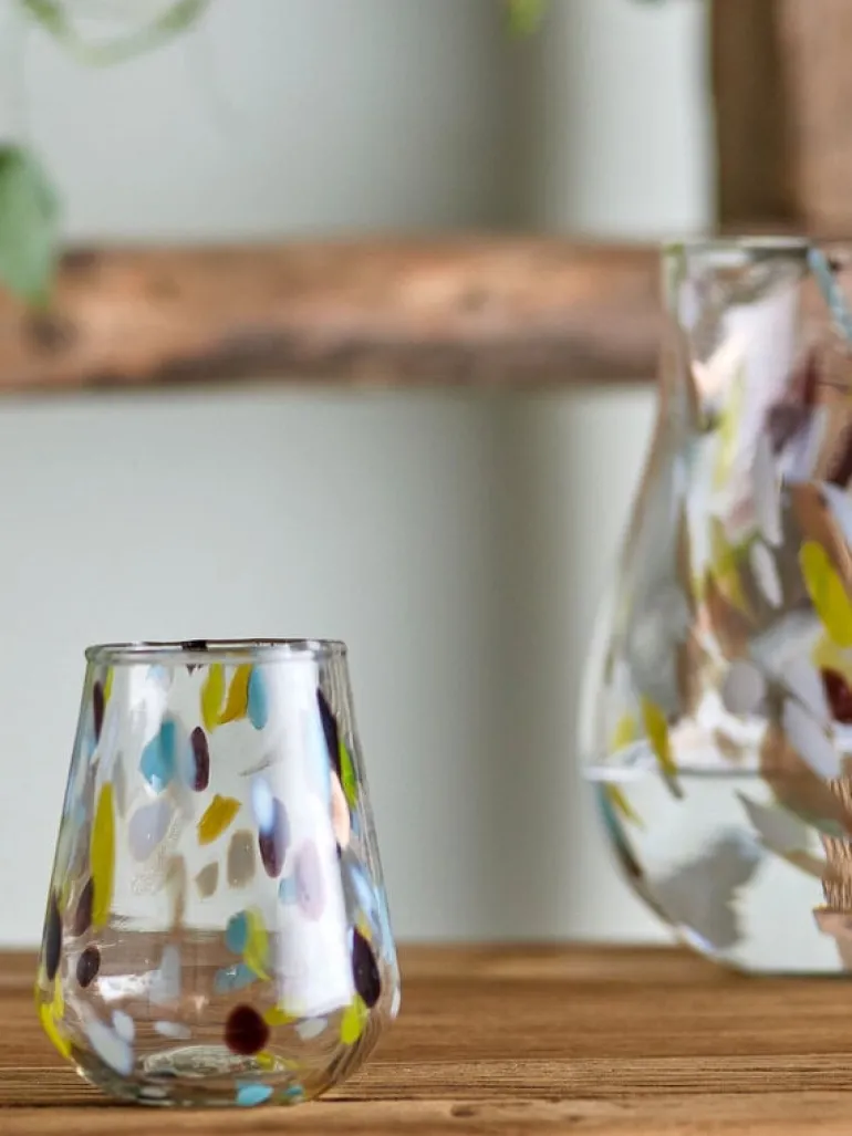 De Bloomingville Kenji glazen zijn echte blikvangers! Het glas is mondgeblazen van gerecycled glas. Elk glas is uniek. Wordt geleverd in een set van 6 stuks. Afmeting Ø9×10,5cm
