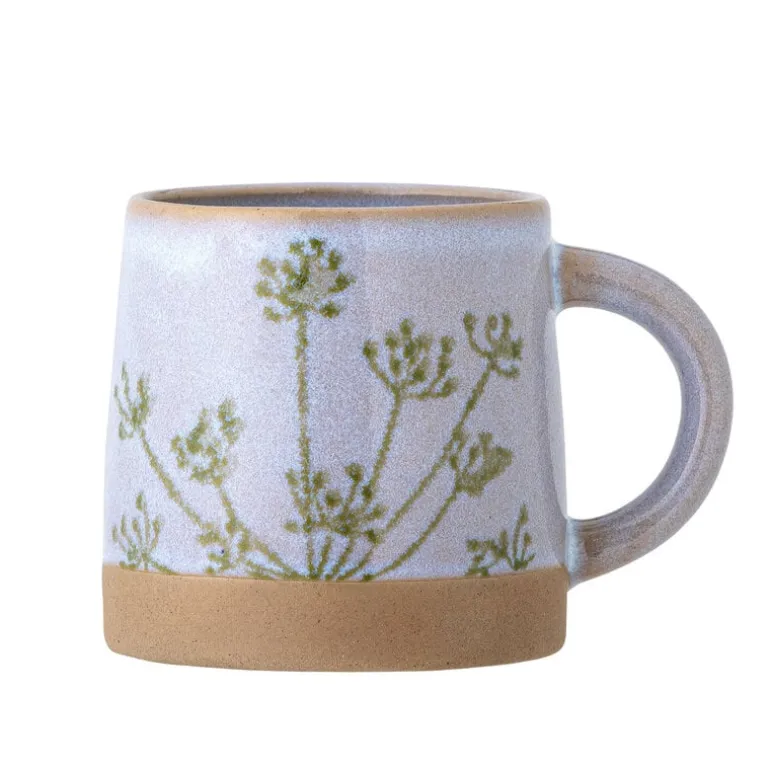 De Bloomingville Kili mokken zijn gemaakt van aardewerk met een botanisch motief in een delicate groene tint op een zachte lichtblauwe achtergrondkleur. Wordt geleverd in een set van 4 stuks. Afmeting Ø9x9cm