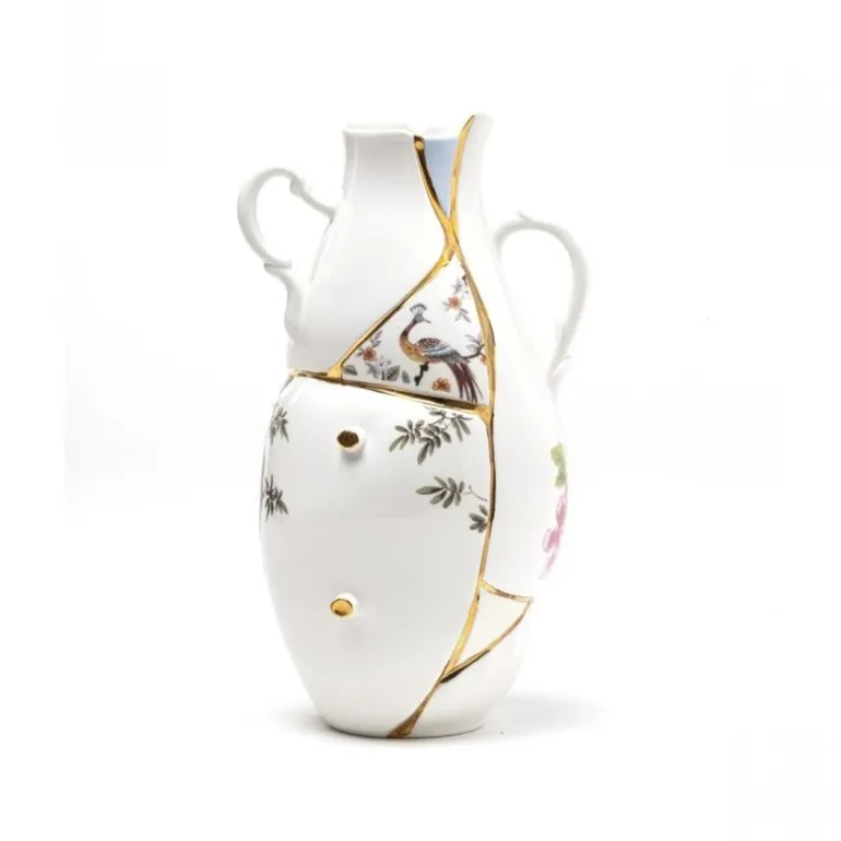 Ontdek de schoonheid van de Kintsugi producten, gemaakt van fijn porselein en verfraaid met echt 24-karaats goud. De Seletti Kintsugi vaas heeft een afmeting van 19x16x32cm.