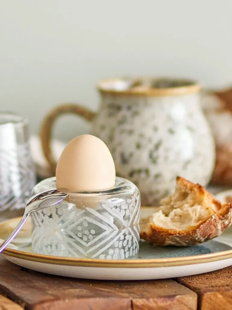 De Bloomingville Kiyomi eierdoppen zijn gemaakt van gerecycled glas en hebben een met de hand gegraveerd patroon. Wordt geleverd in een set van 6 stuks. Afmeting Ø8×5,5cm