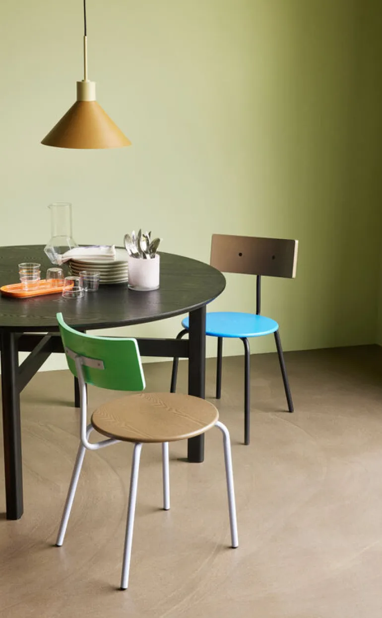 Kleurrijke stoel van het interieurmerk Hubsch. De Hubsch Koi stoel is beschikbaar in verschillende kleuren. Een echte eyecatcher aan de eettafel! Afmeting 42x51x80cm