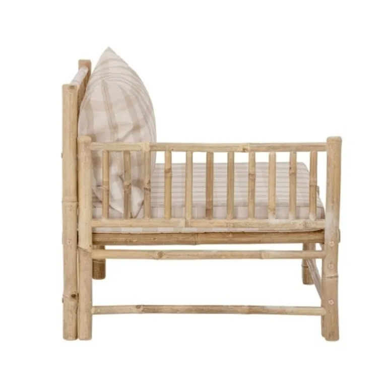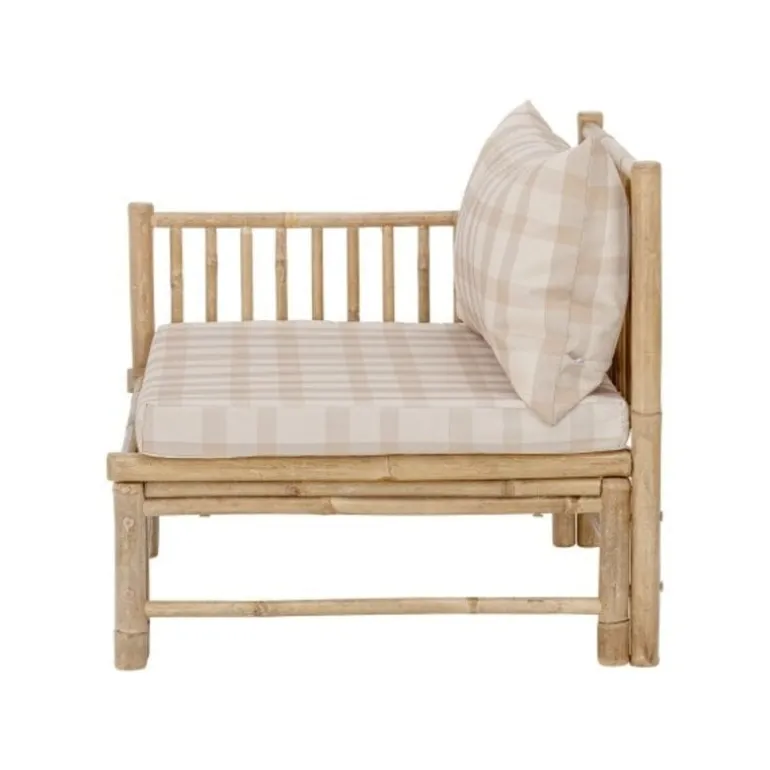Prachtige Bloomingville Korfu bank module hoek links. De Bloomingville Korfu bank is voor buitengebruik maar lees altijd de extra instructies over het onderhouden van bamboe. Combineer met de andere modules om een loungebank te creëren.