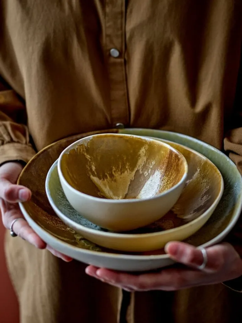 De Bloomingville Lacey schalen worden geleverd in een set van 4 stuks. Elke schaal heeft zijn eigen unieke uitstraling met warme, levendige tinten. Afmeting Ø21x6cm