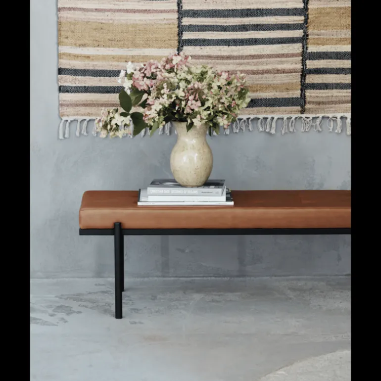 Geef je interieur een stijlvolle touch met de House Doctor Lao bank. De zitting, bekleed met hoogwaardig PU-materiaal in een warme gouden bruine kleur, heeft een klassieke uitstraling door de prachtig geplaatste knopen. Afmeting 160x40x45cm