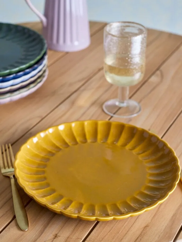 De Bloomingville Latina borden zijn gemaakt van aardewerk en worden geleverd in een set van 6 stuks. De golvende randen voegen zowel textuur als een elegante touch toe aan het ontwerp. Afmeting Ø27x2cm