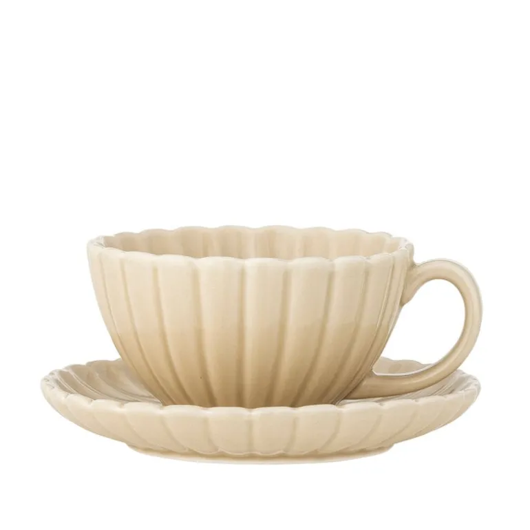 De Bloomingville Latina kopjes en schotels zijn gemaakt van aardewerk. Wordt geleverd in een set van 6 stuks. De golvende randen voegen zowel textuur als elegantie toe aan het ontwerp. Afmeting Ø15×6,5cm