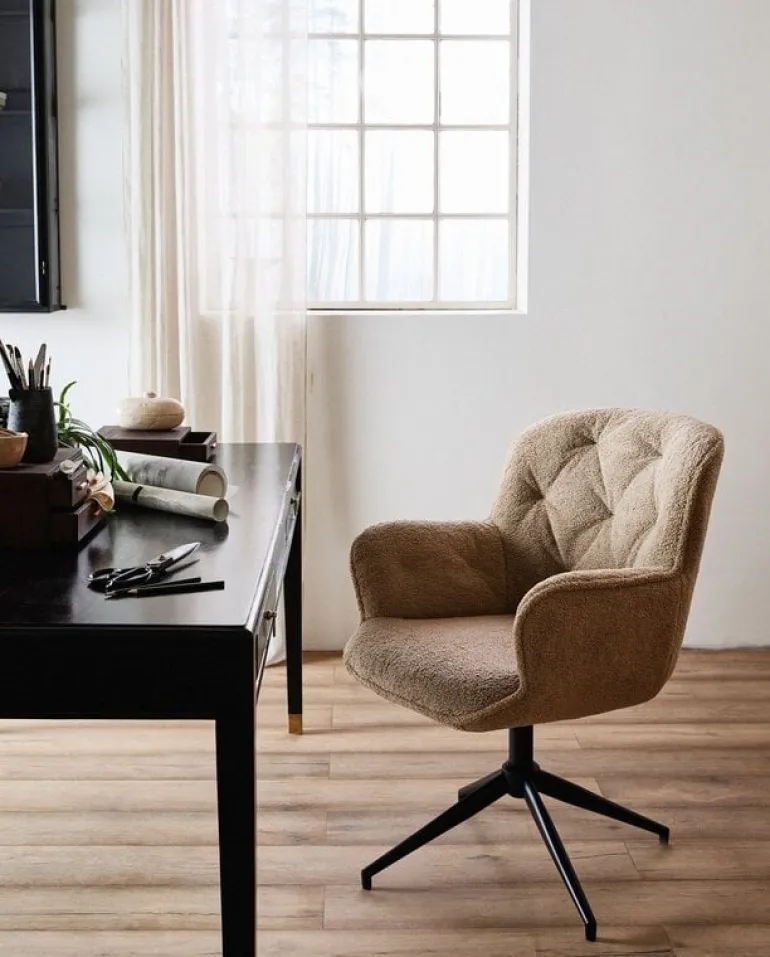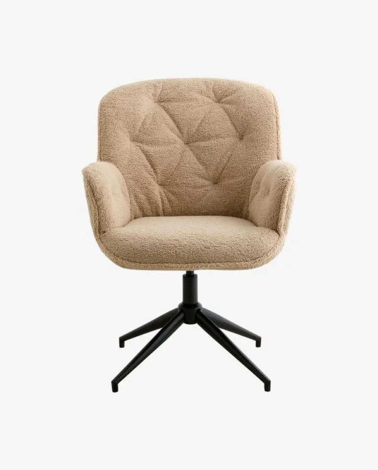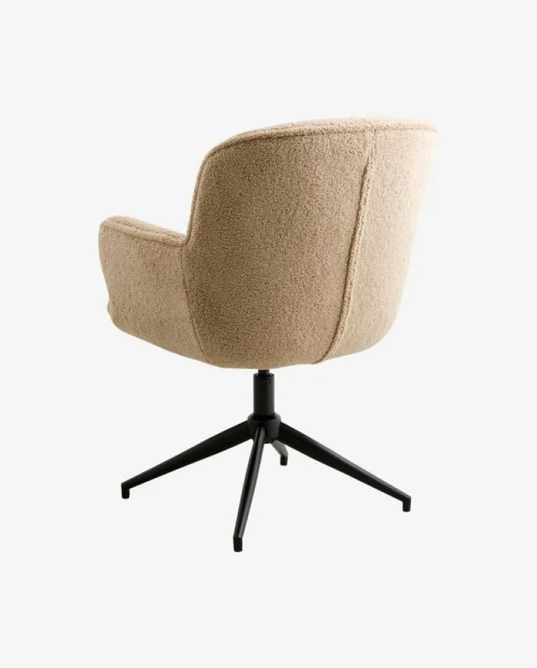 De Nordal Lea bureaustoel is bekleed met een zachte bouclé stof en heeft een zwart metalen onderstel. De stoel kan draaien en is daardoor ideaal aan een bureau. Afmeting 67x64x93cm