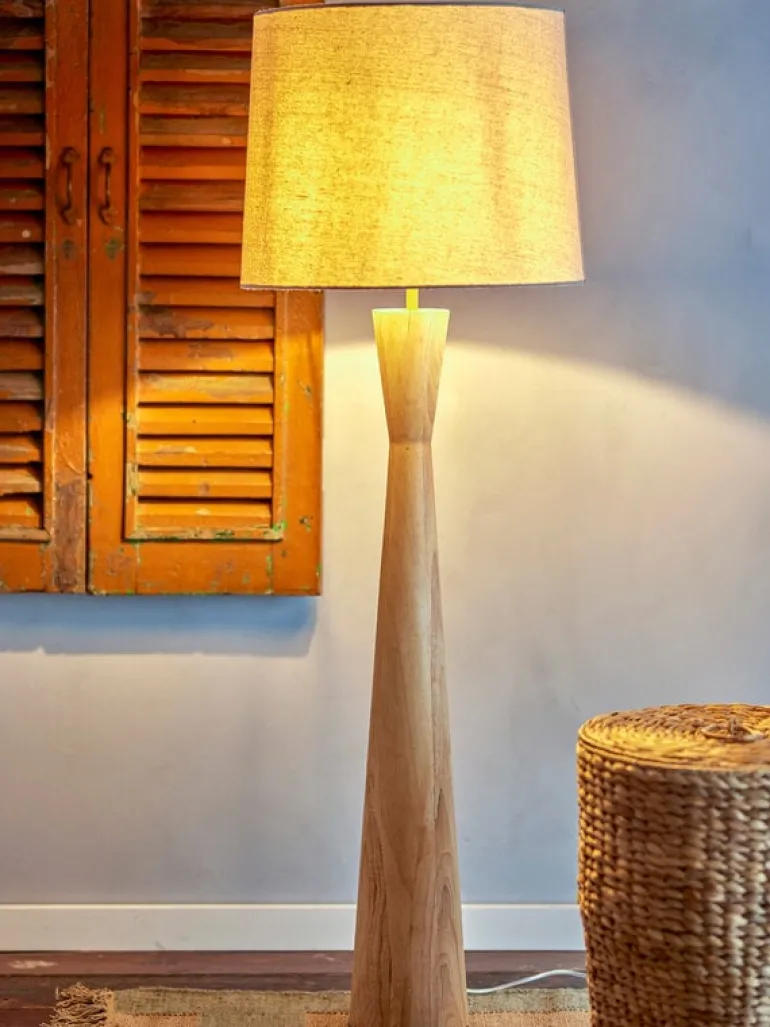 De Bloomingville Leonor vloerlamp is gemaakt van hout in een lange en slanke vorm waardoor de lamp een elegante uitstraling heeft. De kap is gemaakt van linnen in een lichte en natuurlijke kleur. Afmeting Ø45x130cm