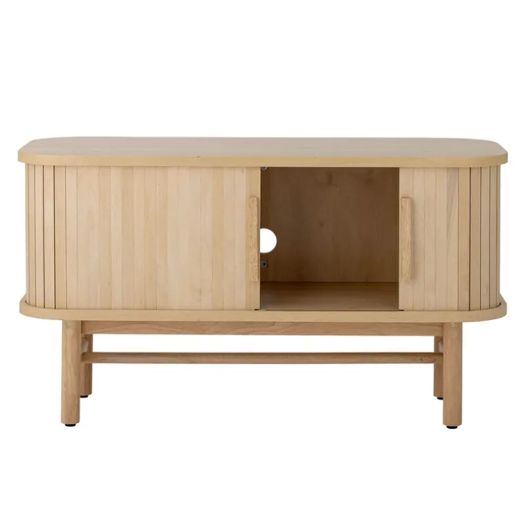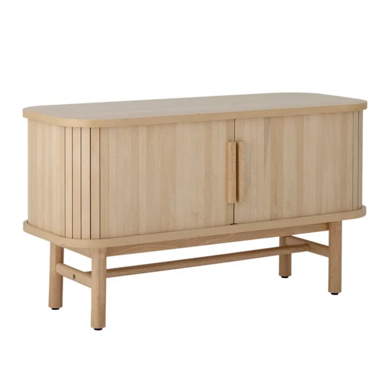 De Bloomingville Lex kast is gemaakt van grenenhout en biedt elegante en praktische opbergruimte met zijn schuifdeuren. Het is ideaal voor de woonkamer, waar het kan worden gebruikt om verschillende items op te bergen of als tv kast. Afmeting 90x50x35cm