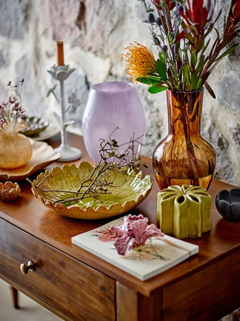De Bloomingville Lilac vaas is gemaakt van glas in een paarse kleur. Heeft een mooie organische vorm. Afmeting Ø17x22cm