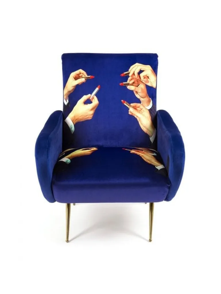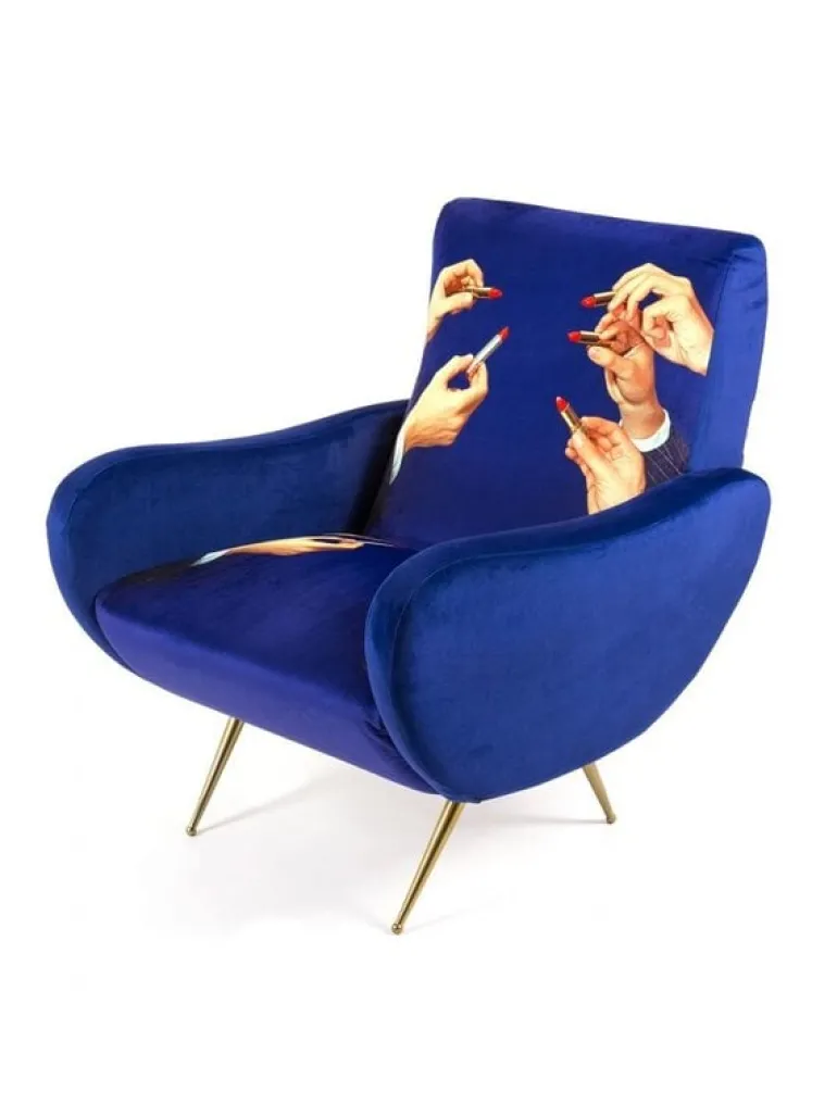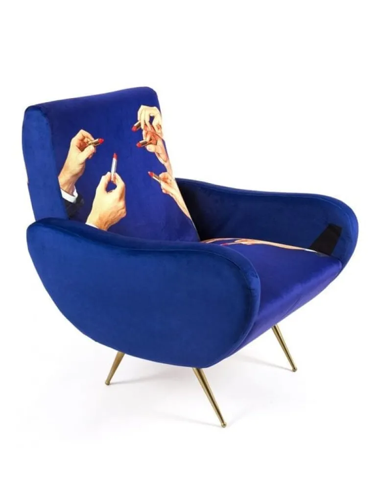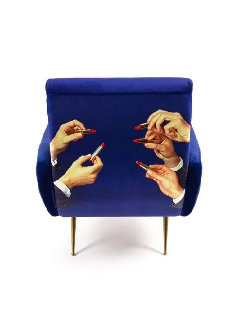 Seletti heeft zich met het ontwerp van de stoel laten inspireren door de jaren 50. Seletti zal altijd verrassen met de print. In meerdere prints en kleuren beschikbaar. De Seletti Lipstick armstoel is een echte EYECATCHER! Afmeting 70 x 79 hoogte 86 cm.
