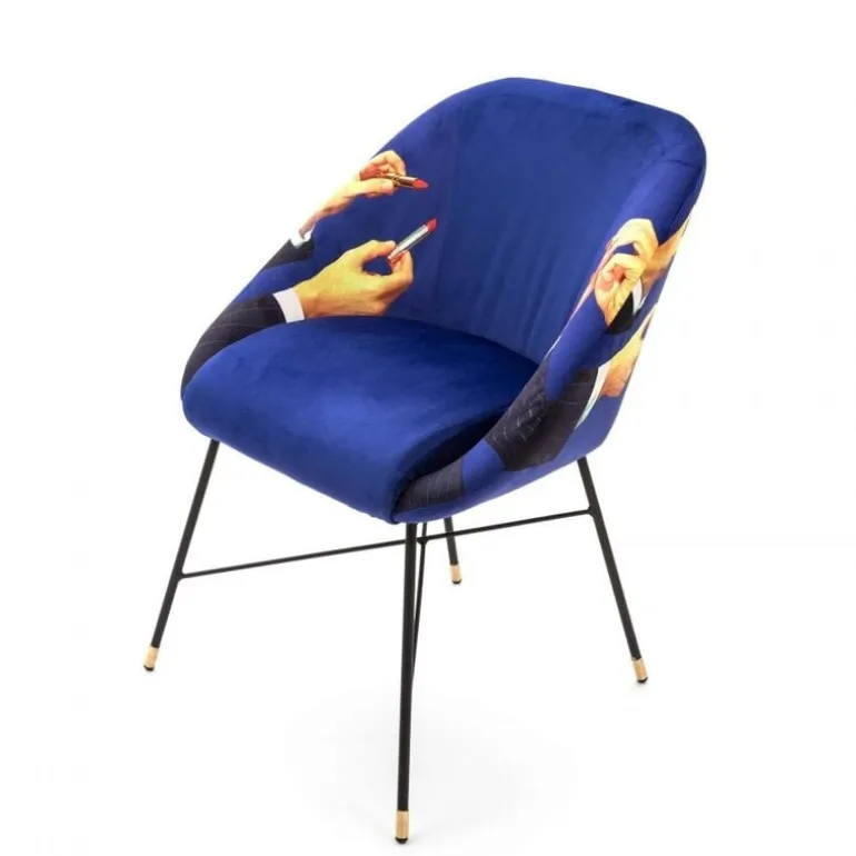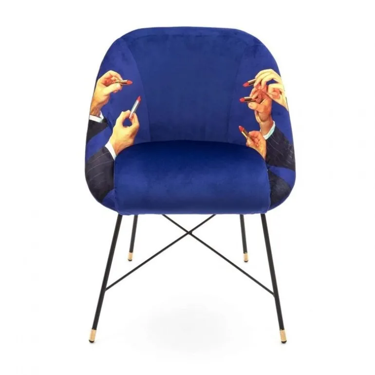 De Seletti Lipsticks padded stoel is een comfortabele stoel. De padded stoelen zijn beschikbaar in verschillende prints, wat heel leuk is om te mixen en matchen. Afmeting 60x50cm, hoogte 72cm.