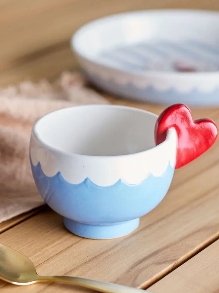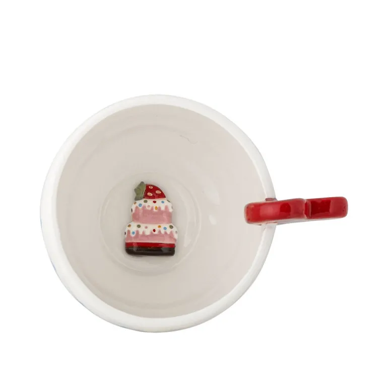 De Bloomingville Lively mokken worden geleverd in een set van 6 stuks. Het zijn charmante kopjes met een hartvorming rood handvat. Binnenin is een met de hand beschilderde decoratie van een taart te zien. Afmeting Ø9x8cm