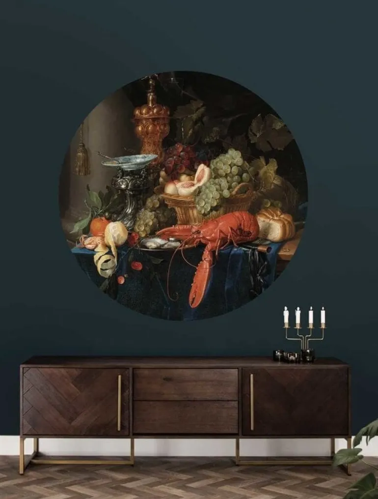 Prachtig hoogwaardig vliesbehang van KEK Amsterdam. De KEK Amsterdam Lobster behangcirkel heeft geen coating waardoor het behang een super matte uitstraling heeft. Beschikbaar in verschillende afmetingen. Afmeting ø 142,5 cm (3 banen)