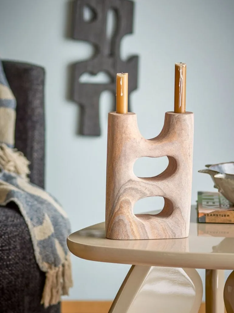 De Bloomingville Lodi kandelaar is gemaakt van zandsteen. De warme kleuren benadrukken het natuurlijke karakter van het steen en maken elke kandelaar uniek. Afmeting 18×25,5x7cm