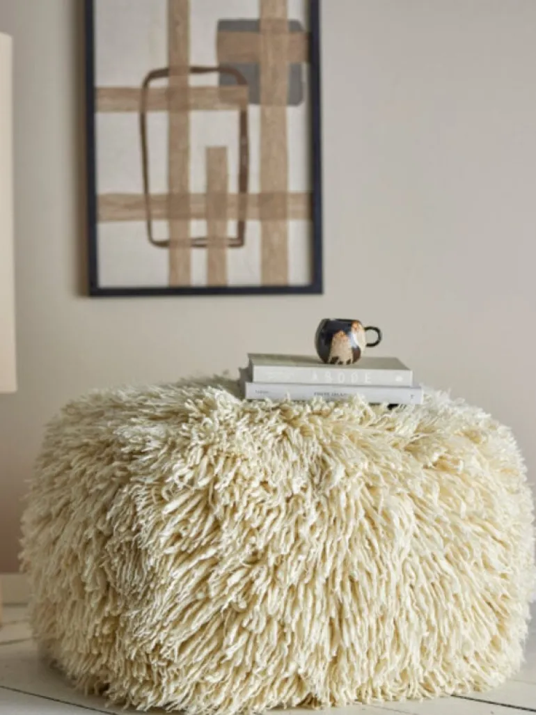 De Bloomingville Lomba poef is een elegante toevoeging aan elk huis met zijn getufte wollen ontwerp. Gebruik de poef als stijlvol en comfortabel element in je woonkamer om een warme en gezellige sfeer te creëren. Afmeting 60x40x60cm