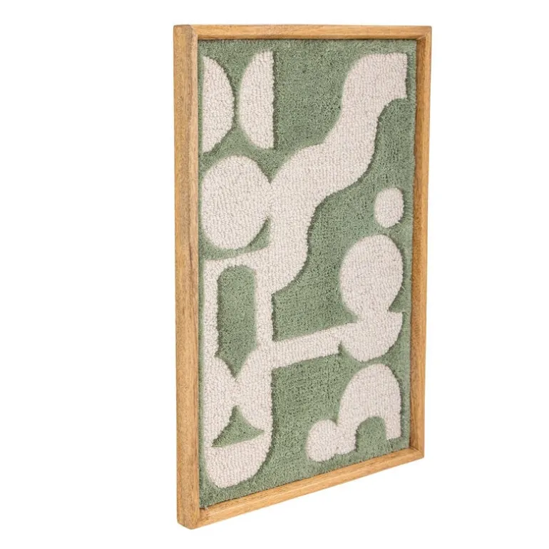 De Bloomingville Longton wanddecoratie bestaat uit harmonieuze, organische vormen op een zacht getuft oppervlak in een prachtige tint groen en lichte kleuren. Het grafische patroon is prachtig ingelijst in een houten frame. Afmeting 65x45cm