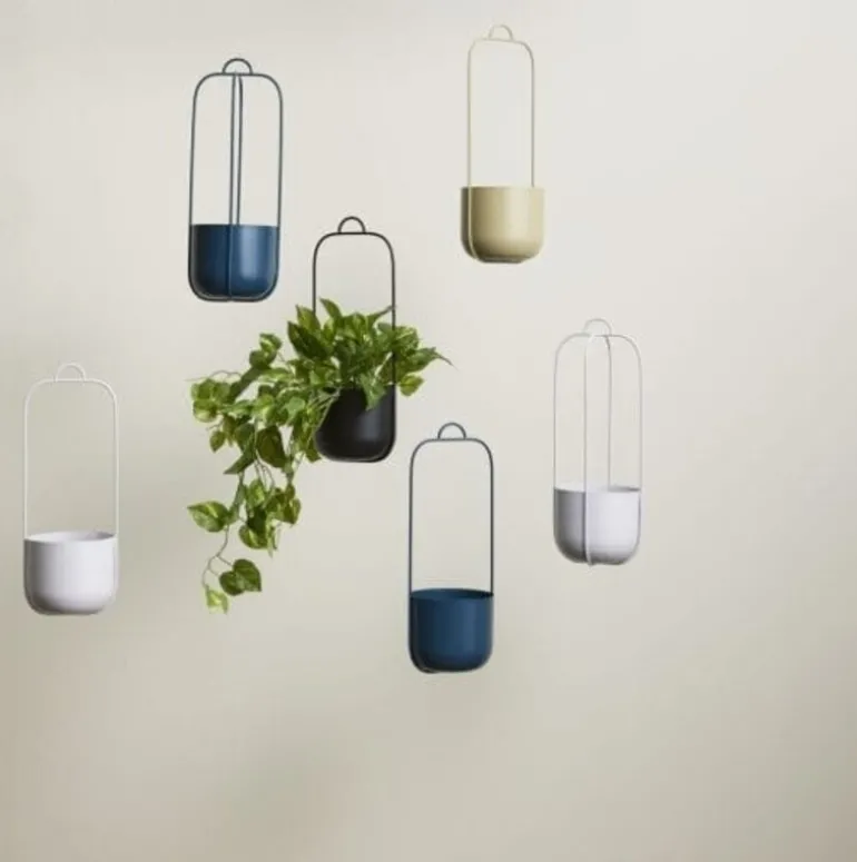 Set van 2 bloempotten om op te hangen. De Hubsch Lotus hangende bloempotten zijn gemaakt van ijzer en hebben een afmeting van ø16xh44cm. Beschikbaar in meerdere kleuren.