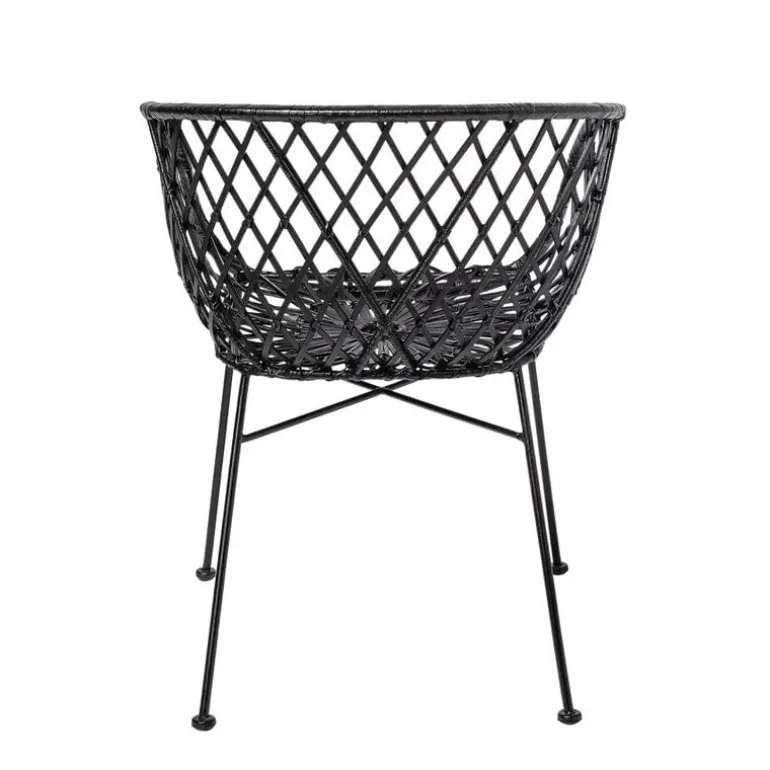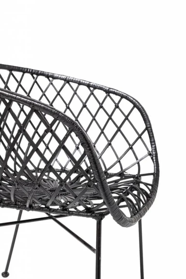 Prachtige Bloomingville loungestoel. Deze Bloomingville loungestoel is gemaakt van zwart gespoten rotan met zwart metalen onderstel. De zithoogte van de stoel is 45cm.